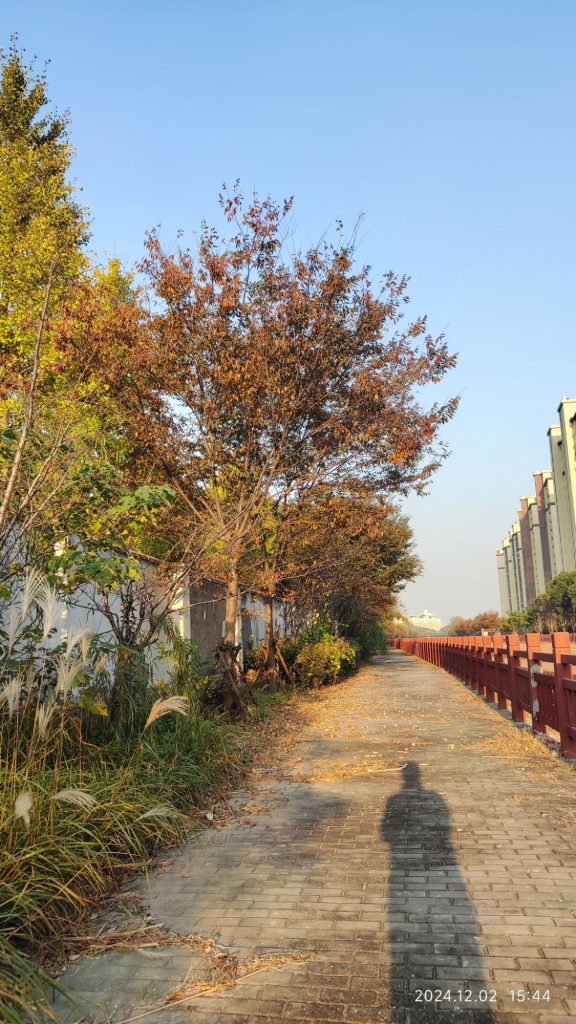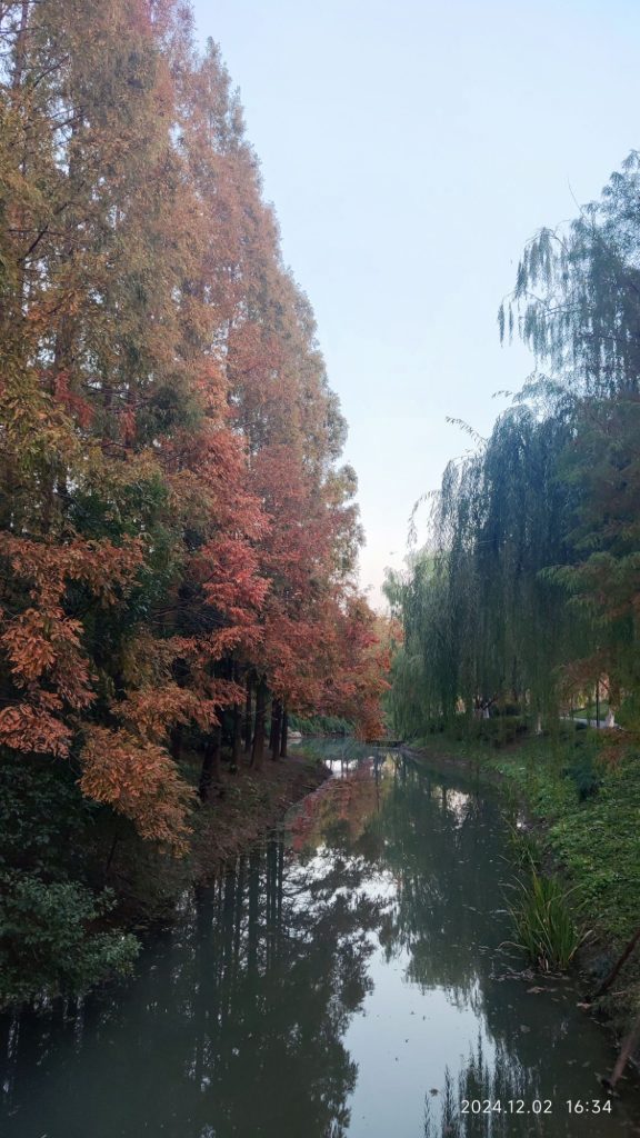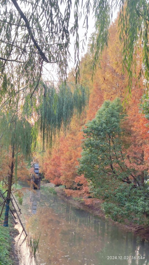 第三公里处有枯荷折颈。焦褐的茎秆在雾中支起瘦金体笔画,残破的莲蓬垂首数着冰裂纹,水面浮着昨夜未化的薄冰,倒映出雷峰塔虚影正被晨光一寸寸填实。柳条在风中划出嶙峋的浅灰弧线,某段枝桠突然簌簌震颤——原是松鼠掠过时蹬落的霜花纷扬。