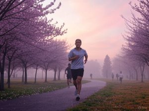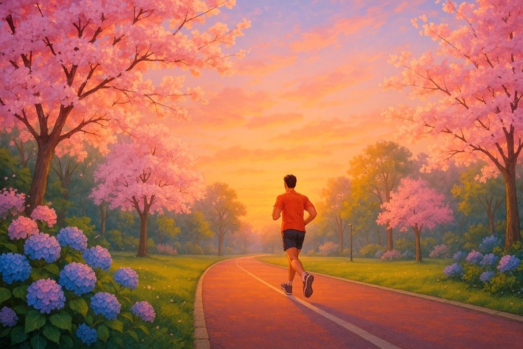 卖定胜糕的铺子刚支起蒸笼,甜暖水汽追着跑者的脚步,在空濛山水间拖出一道人间烟火。