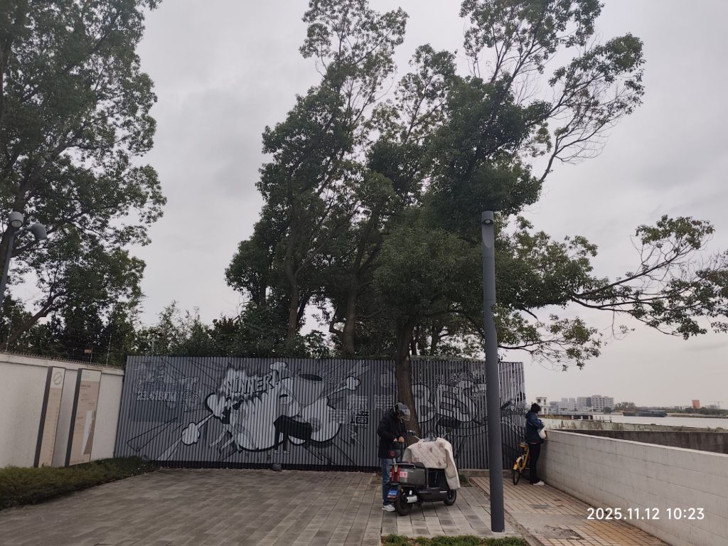 六点四十五分遇见穿橙色工作服的清洁工。他握着长竹帚清扫爆竹碎屑,朱漆灯笼在身后晕出团团暖红,我们交错时扫帚尖在青砖上勾出新月纹,像给旧年画最后一道描金。行至西泠桥头,湖面忽被裁开细银口子,原来是一对绿头鸭破冰而来,漾开的涟漪里沉浮着香灰烬与松针。