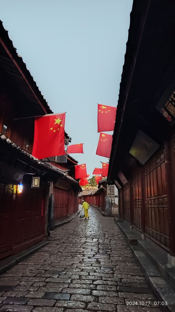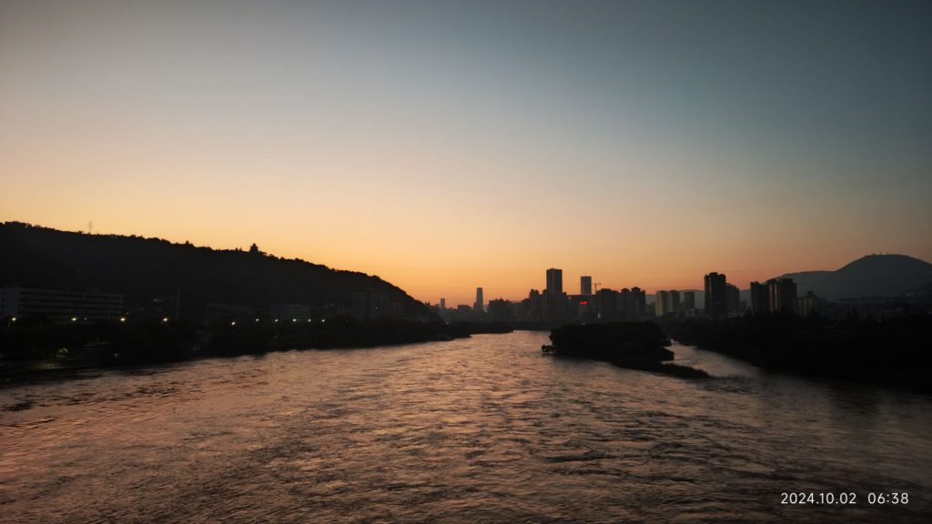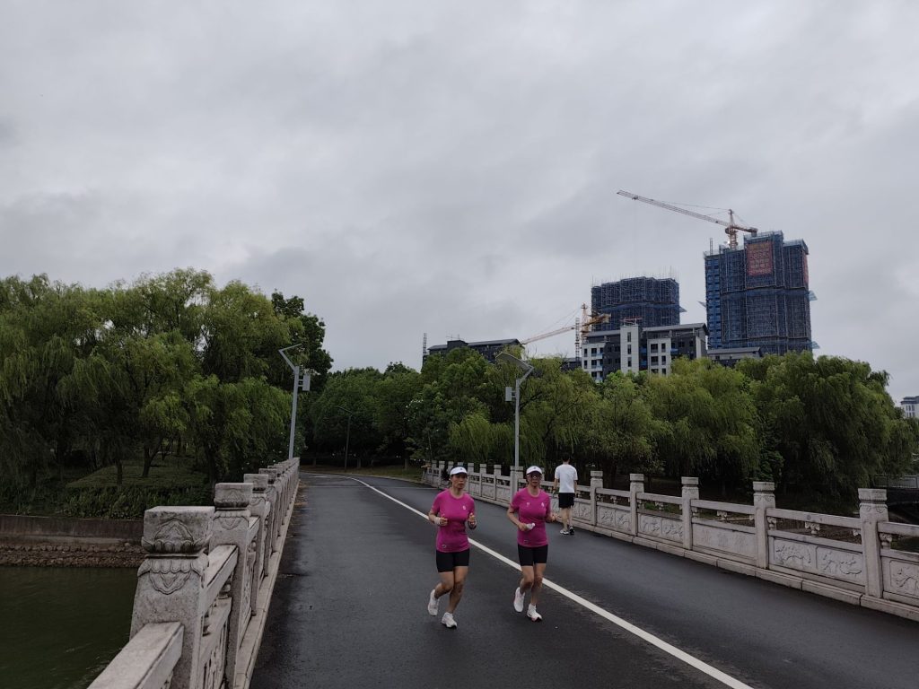 卖定胜糕的铺子刚支起蒸笼,甜暖水汽追着跑者的脚步,在空濛山水间拖出一道人间烟火。