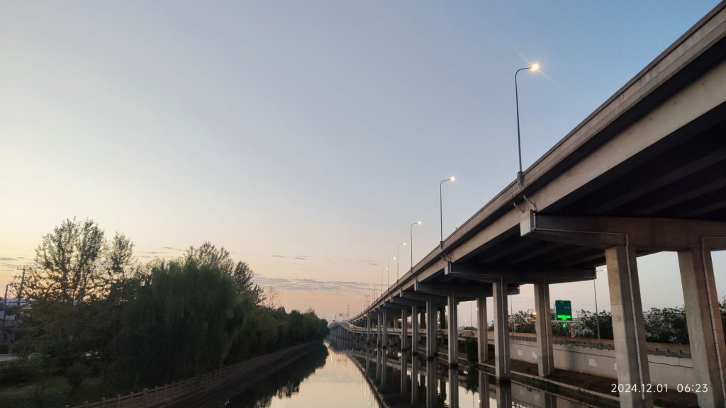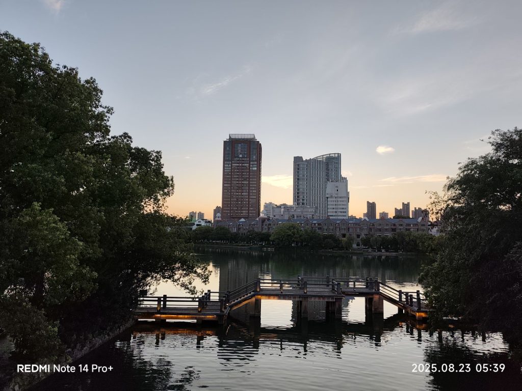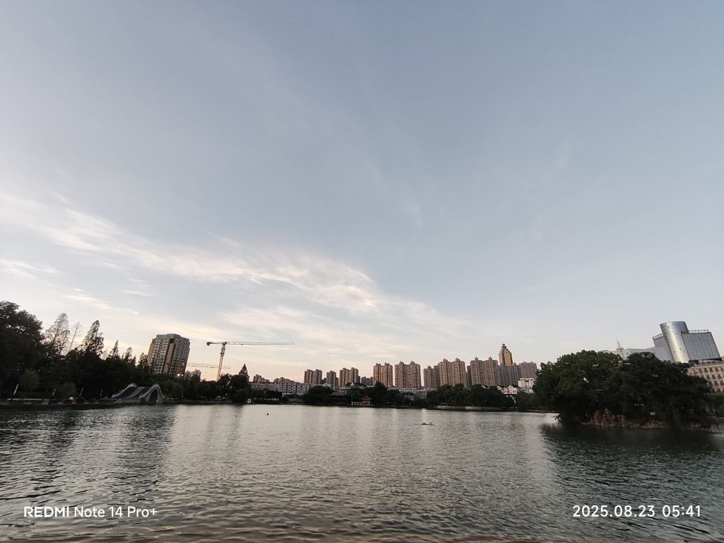 六点四十五分遇见穿橙色工作服的清洁工。他握着长竹帚清扫爆竹碎屑,朱漆灯笼在身后晕出团团暖红,我们交错时扫帚尖在青砖上勾出新月纹,像给旧年画最后一道描金。行至西泠桥头,湖面忽被裁开细银口子,原来是一对绿头鸭破冰而来,漾开的涟漪里沉浮着香灰烬与松针。