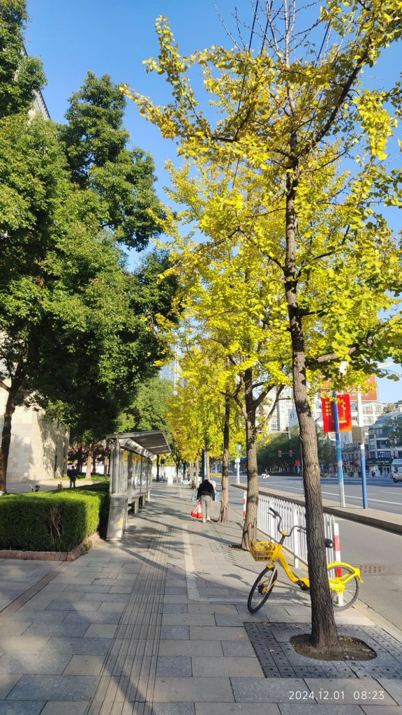 今年的银杏叶并不好,稀稀疏疏的,颜色也不够黄,看了之后觉得还是家门口都市路上的好。