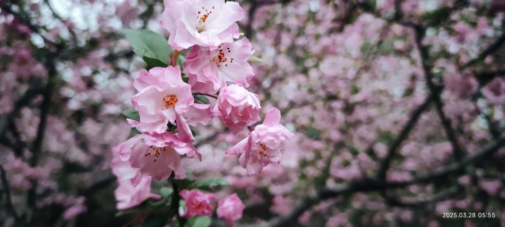 东京樱花属于中樱类别。它也被称为染井吉野樱、日本樱花、江户樱花等。东京樱花是一种杂交品种,其亲本为大岛樱和江户彼岸樱。这种樱花是樱花品种中最为人熟知的品种之一,花期在3月中下旬,花朵单瓣,淡粉红色,花色会由淡红色逐渐转白