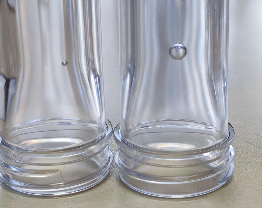 - 外观: 可在透明PET制品中清晰看到小气泡,位置可能是内部或靠近表面。